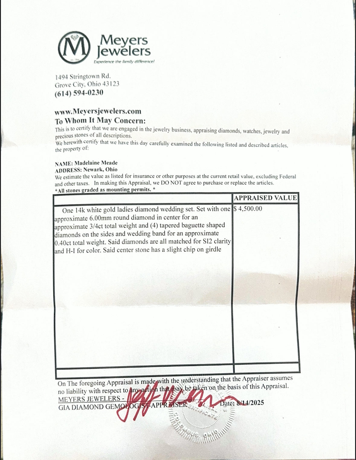 This set was professionally appraised on August 14, 2025 by Meyers Jewelers in Columbus, OH, with a documented replacement value of $4,500.