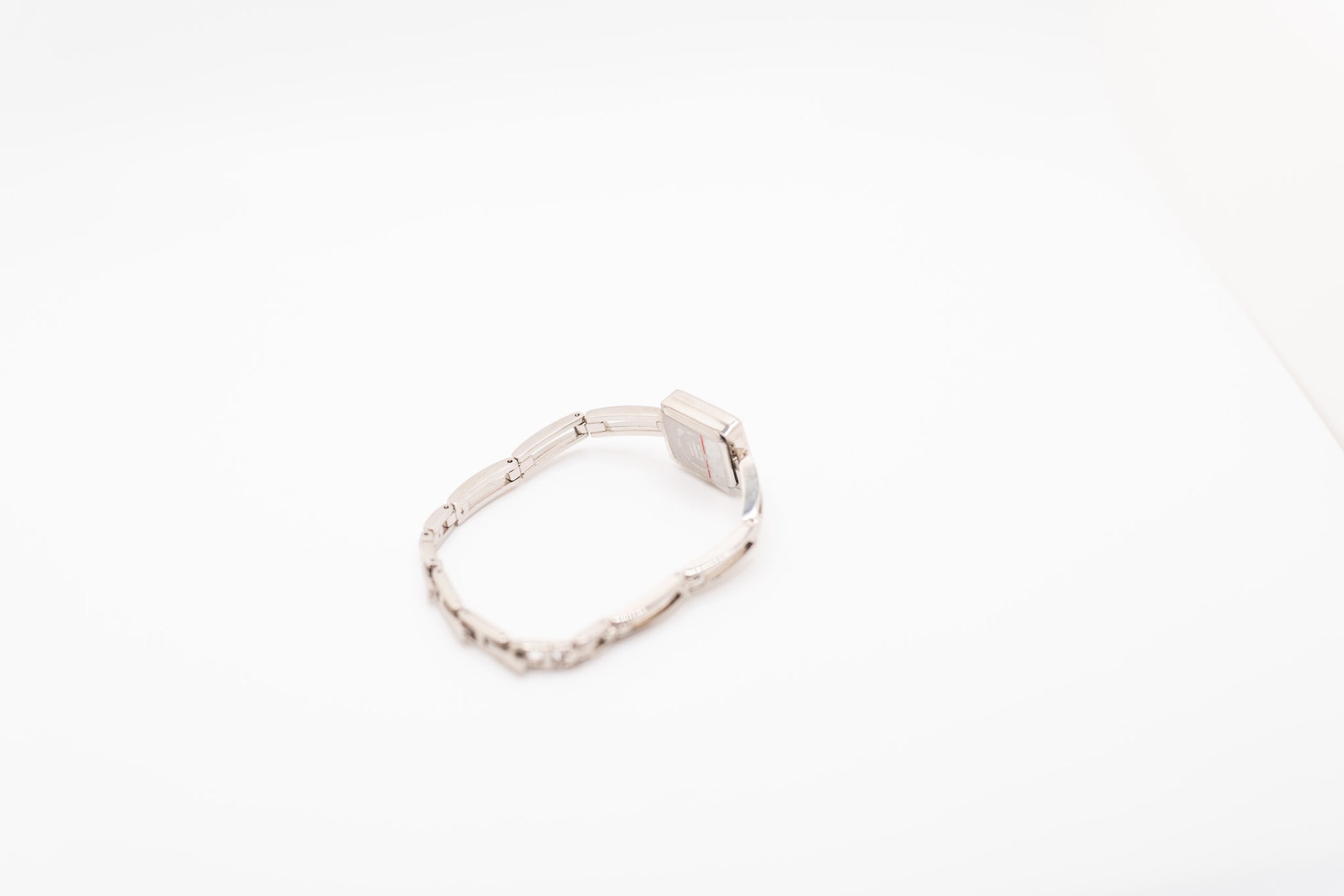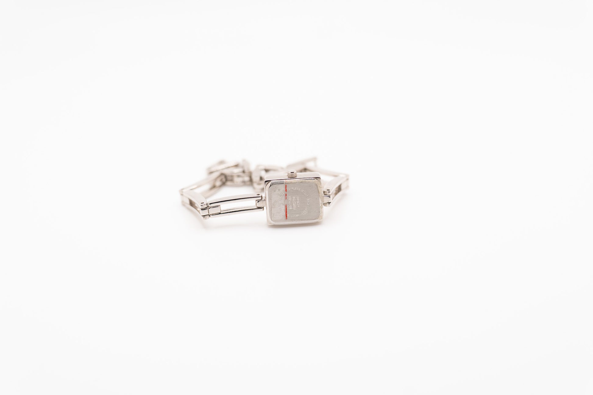 Runs at time of listing. Really nice condition, still has plastic sticker on the back. Stainless steel backing, Japan movement. 8.5 inches in length but has snap on adjustable links.
